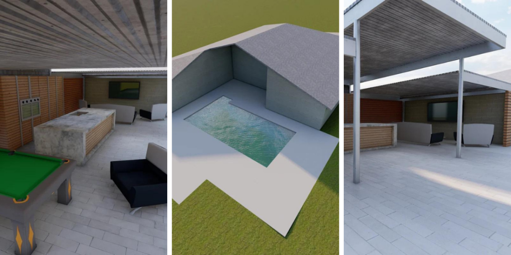 Whether you want to incorporate a relaxing Asian sensory garden into your outdoor pavilion design, a modern and minimalist concept, or perhaps a rustic Italian outdoor kitchen, we’re here to help. Our expert team at Axiom Structures can take what you’ve sketched out on paper, and turn it into your dream outdoor pavilion. Based in Florida, our structural engineers use rendering and 3D modeling to bring your ideas to life right before your eyes! In fact, here’s what we recently did for one client who wanted to maximize their backyard and build a beautiful kitchen pavilion.